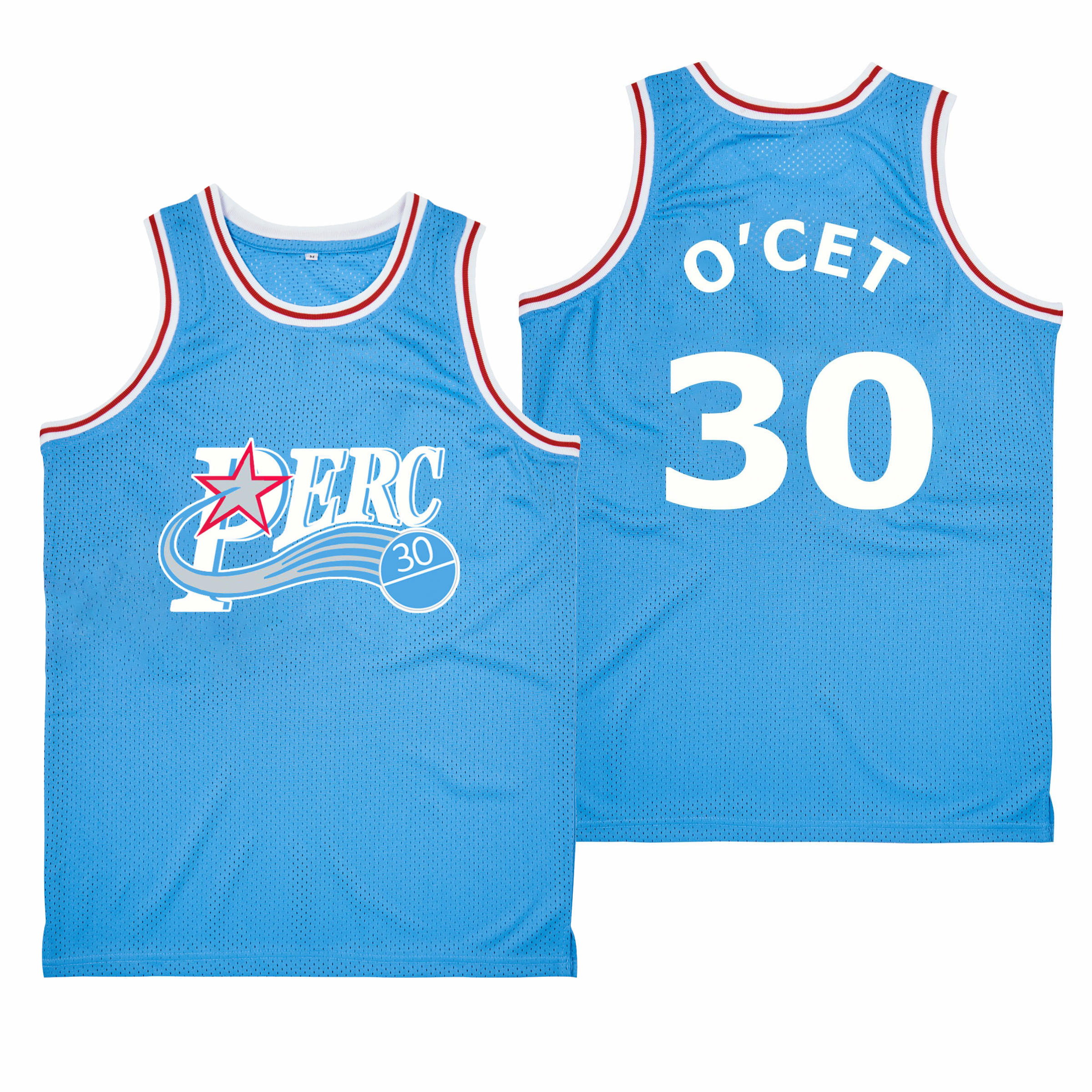 Combine your love of sports, streetwear and nostalgia by copping the Above the Perc 30 O’CET light blue Mesh basketball jersey. Inspired by the fans ask for and made with breathable mesh with sweat-wicking technology to help keep you cool and dry whether you’re burning up the court or just keeping it casual around town. Don’t sleep on this iconic basketball jersey, available now at Jersey Nation while stock lasts!