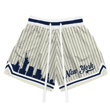 New York city throwback cream stripe Printed Mesh Shorts